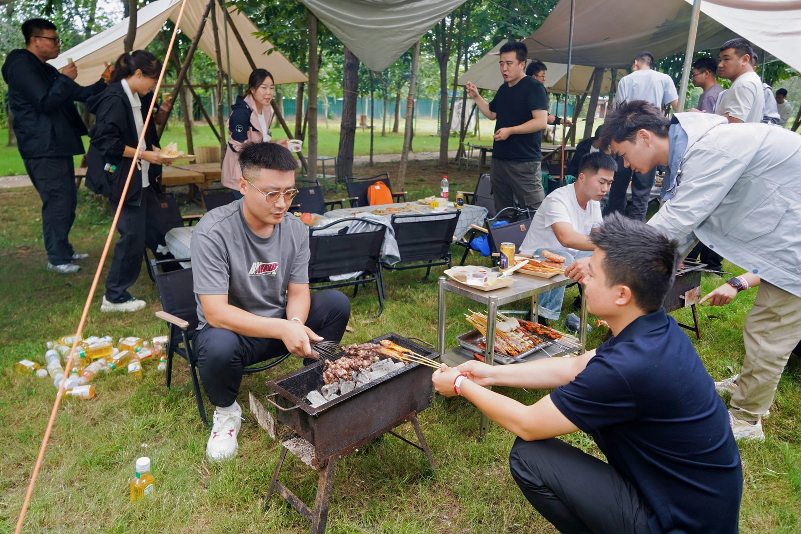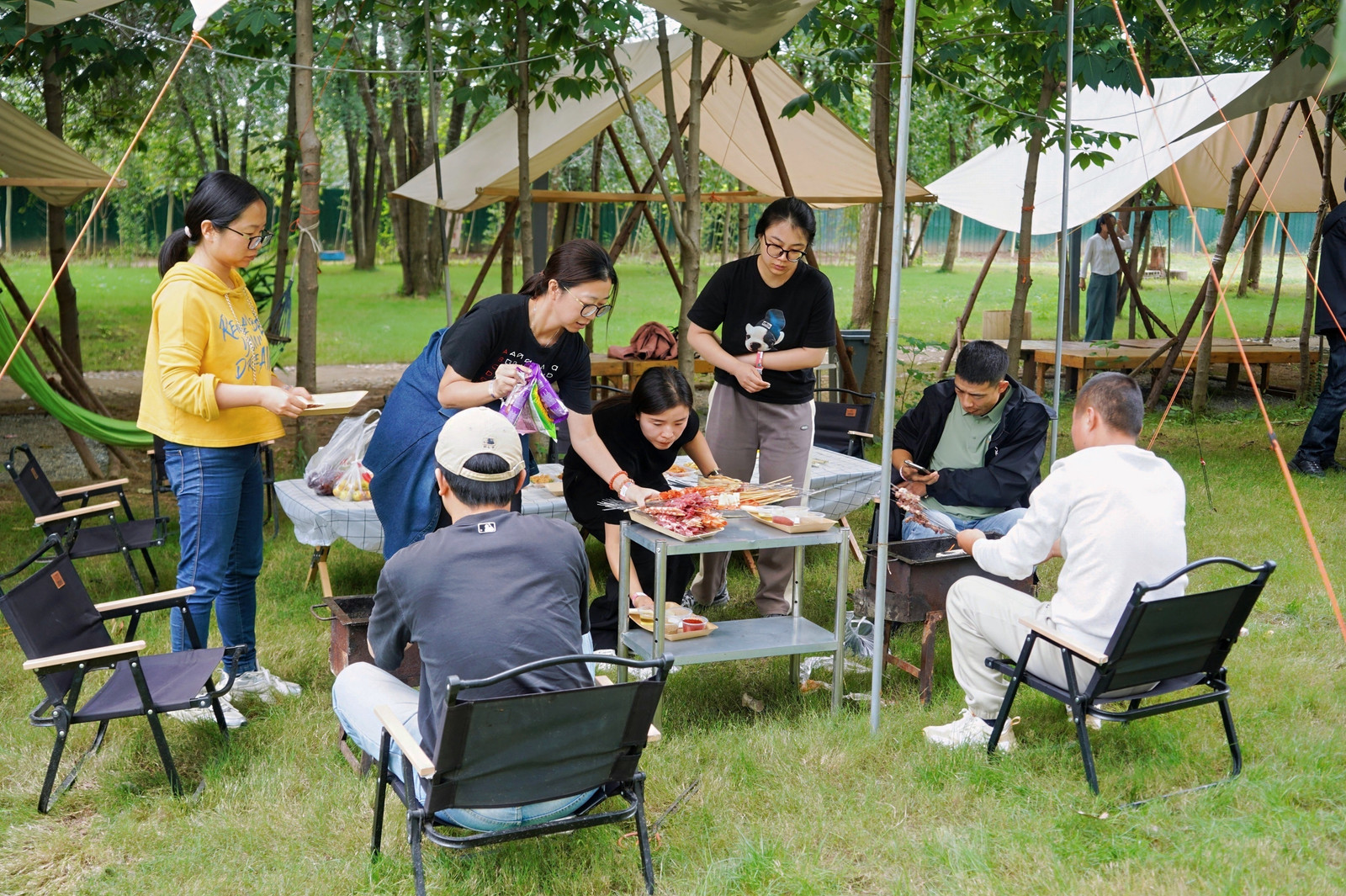 员工们来到露营地,开启烧烤模式:尽情享受美食与欢乐时光。