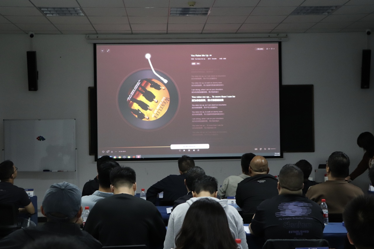 为进一步强化学员对英语节奏、连读与情感表达的感知,课程特别设置了经典歌曲 You Raise Me Up 鉴赏环节。Fiona老师引导学员在聆听中辨析歌词的发音现象,并共同探讨歌曲所传递的激励、合作与感恩的核心情感。此环节不仅提升了学员的语音敏感度,更引发了大家对于团队支持与跨文化协作的情感共鸣,为紧张的培训注入了温暖而深刻的人文内涵。